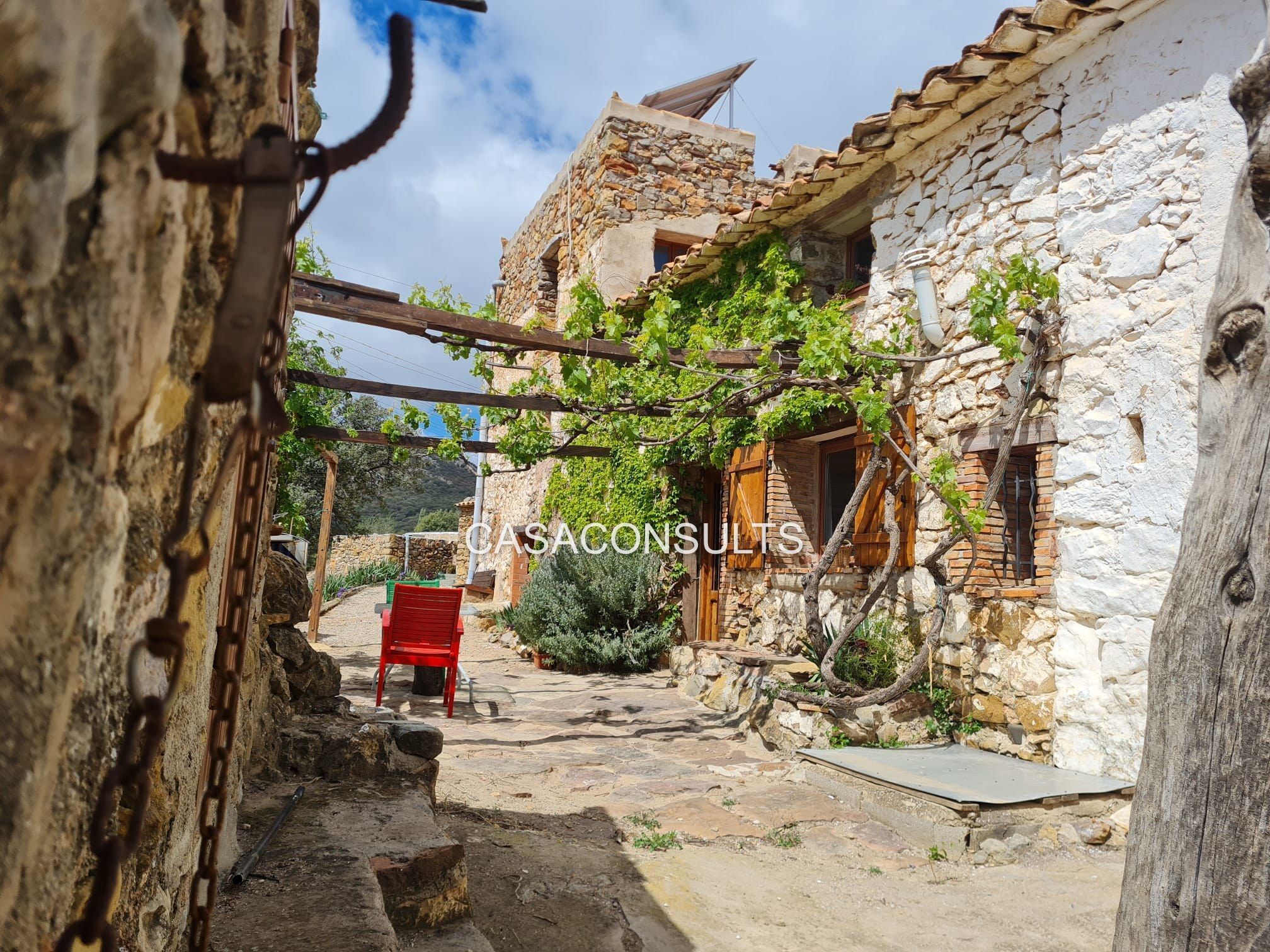 Además de su alma tradicional, la masía se vende completamente amueblada y cuenta con un aljibe de agua que, mediante una bomba, asegura un suministro constante para toda la propiedad. También se benefician de paneles solares, lo que añade un toque ecológico a su belleza rural.