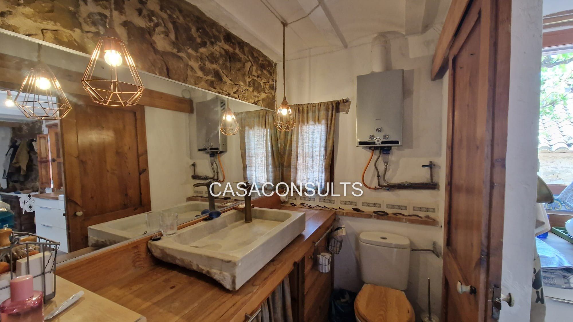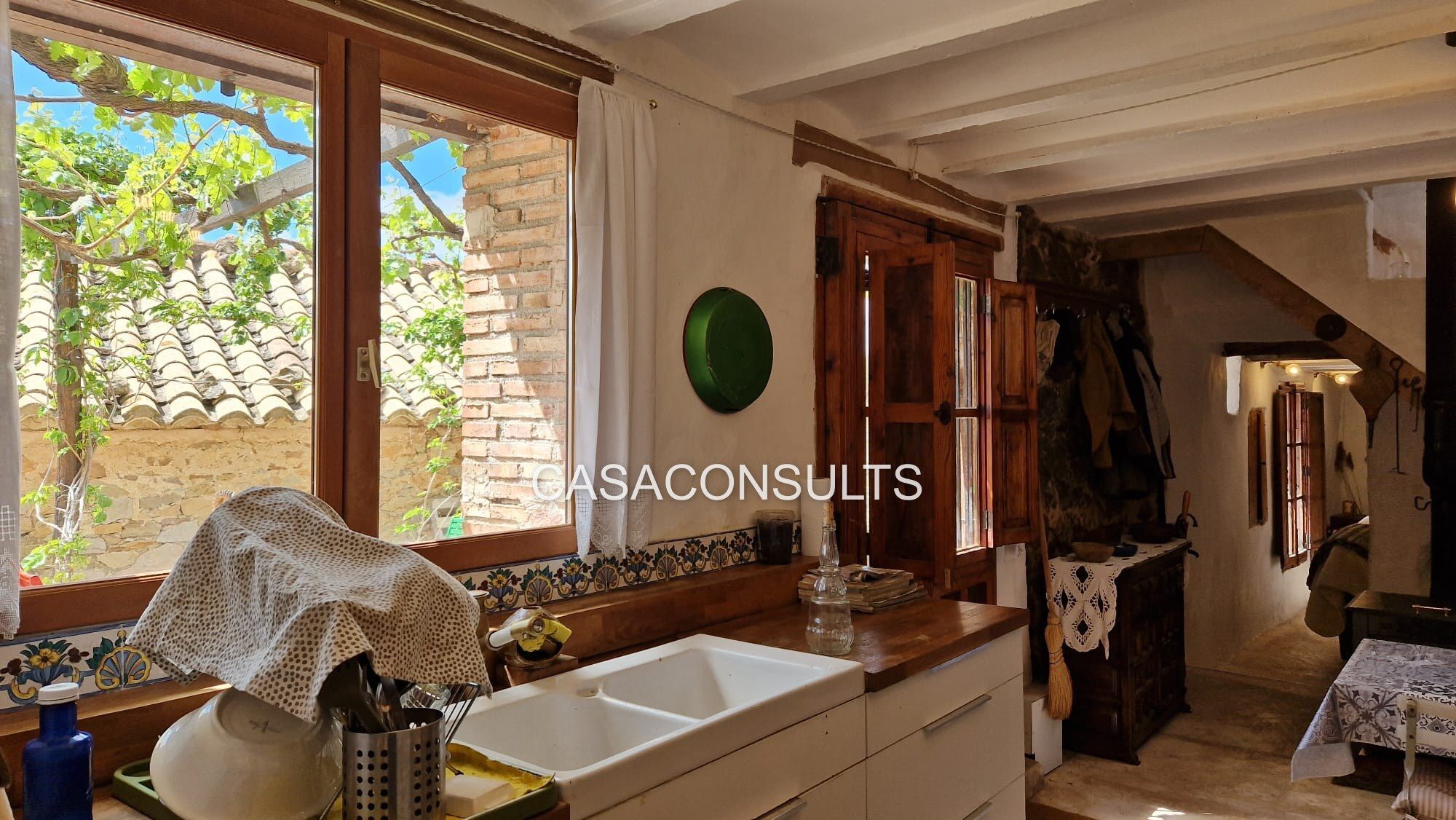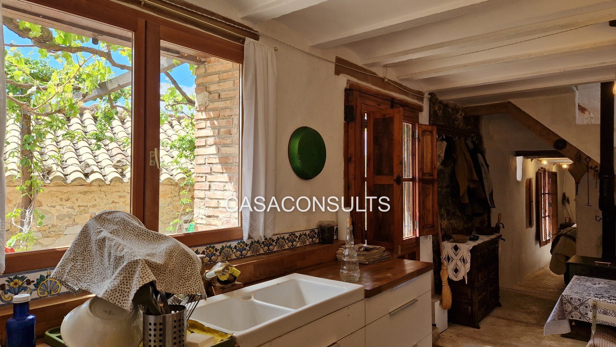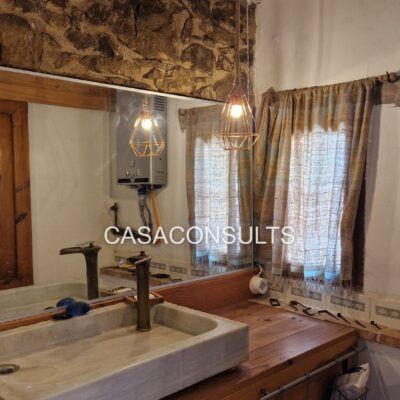 Nada más entrar, te recibirán ambientes llenos de carácter y calidez. La cocina-comedor, totalmente equipada, crea un punto de encuentro ideal para disfrutar en familia. A la derecha encontrarás un baño completo, equipado con plato de ducha y aseo. La calidez del hogar se siente en el ambiente gracias a la chimenea que calienta tanto la planta baja como el piso superior. Además, la masía cuenta con un amplio salón, también con chimenea de leña, donde se encuentra un horno moruno restaurado, que invita a disfrutar de tardes acogedoras en invierno rodeado de libros y buena compañía.