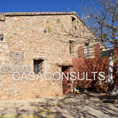 Es importante destacar que la cocina dispone de una estufa de leña. Además, la masía está adosada a otra propiedad y cuenta con un terreno compartido de más de 15.000 metros cuadrados, donde se pueden encontrar almendros y olivos. También hay un gran aljibe de unos 50.000 litros de agua y una granja que actualmente no está en producción, pero que podría utilizarse como almacén, garaje, taller o uso turístico.