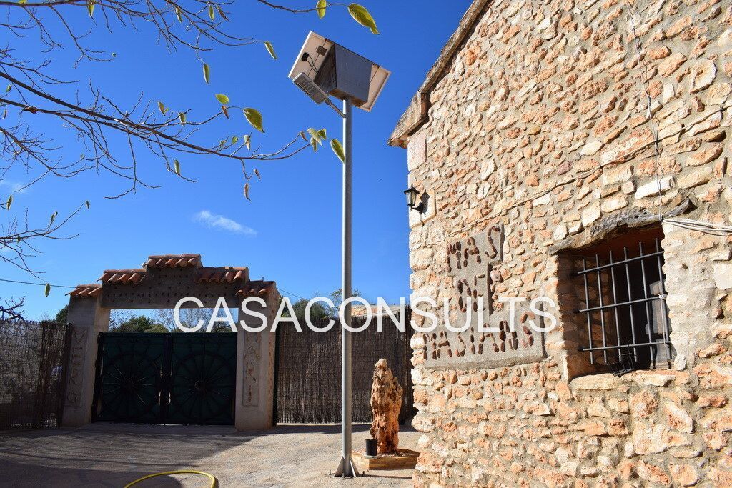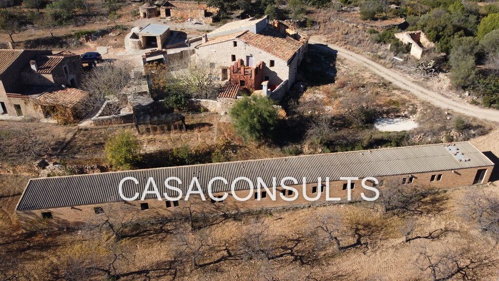 Es importante destacar que la cocina dispone de una estufa de leña. Además, la masía está adosada a otra propiedad y cuenta con un terreno compartido de más de 15.000 metros cuadrados, donde se pueden encontrar almendros y olivos. También hay un gran aljibe de unos 50.000 litros de agua y una granja que actualmente no está en producción, pero que podría utilizarse como almacén, garaje, taller o uso turístico.