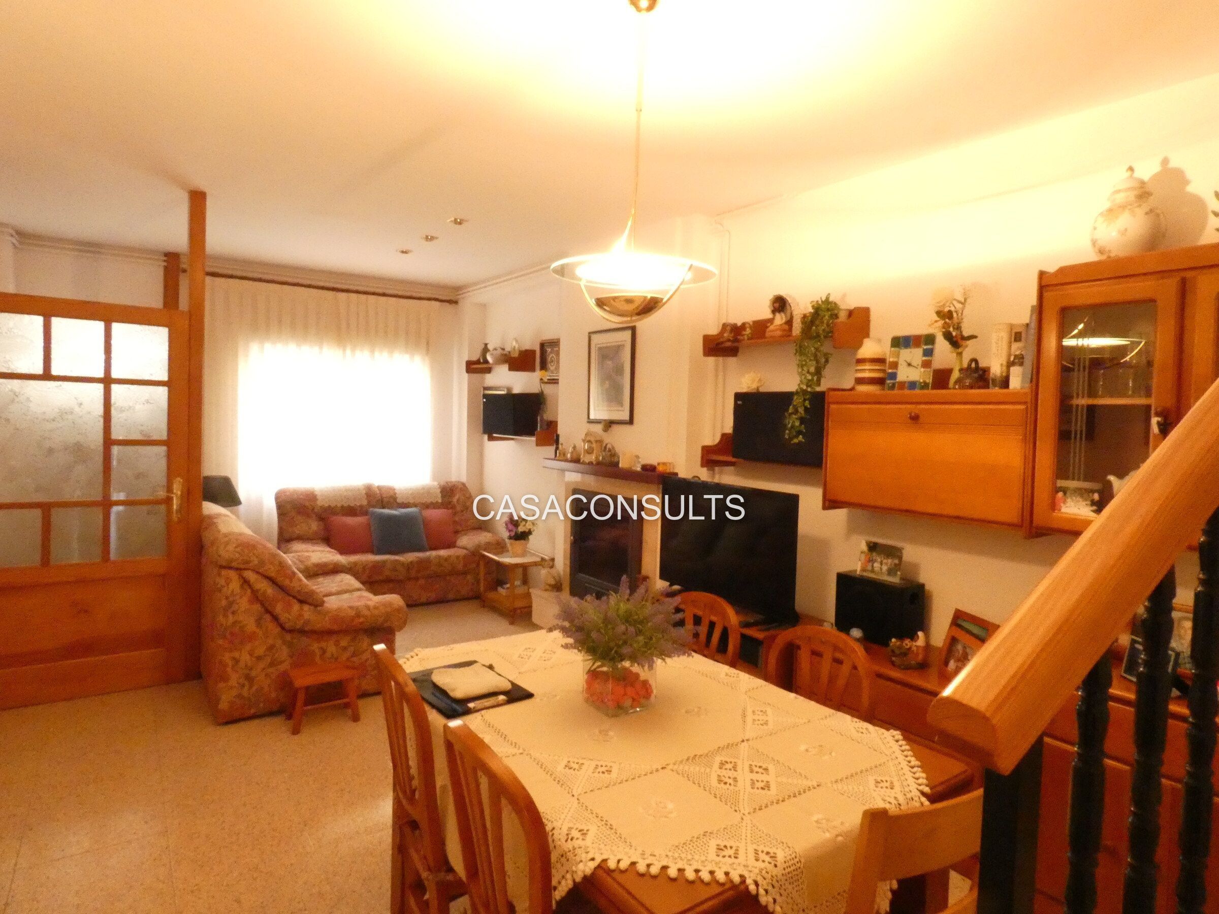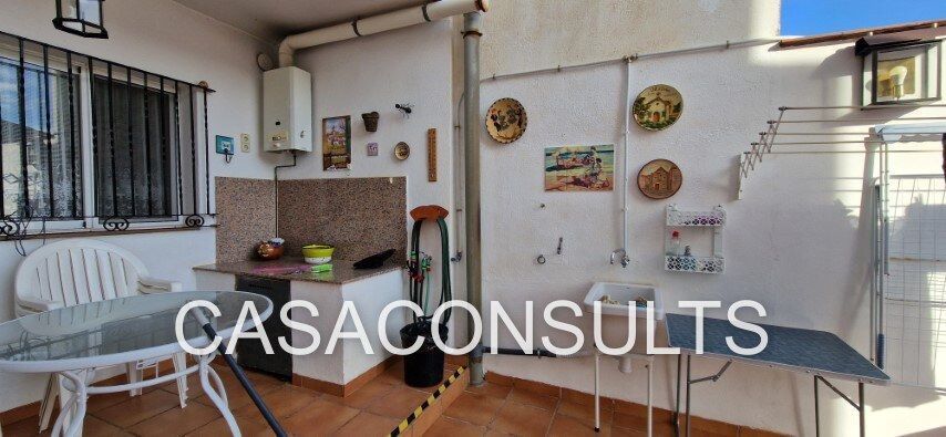 Casa en pleno centro del pueblo con acceso desde dos de sus encantadoras calles. Con una distribución en tres alturas, accedemos directamente al salón/comedor que nos reciben con luz natural.  En esta estancia, cuenta con una chimenea ideal para los meses de invierno. Además la casa dispone de calefacción eléctrica en todas las estancias. En ésta misma planta cuenta con un aseo completamente amueblado y una gran cocina con luz natural bastante amplia que dispone de una mesa ideal para tomar el café por las mañanas. Una despensa que cuenta con zona con lavadora y lavadero completan la planta baja. Desde la cocina, accedemos directamente a una gran terraza interior donde poder disfrutar de una barbacoa con los amigos. Además, hay que tener en cuenta que la propiedad da a dos calles y desde la misma terraza mediante la escalera desde donde se accede a la zona del garaje.