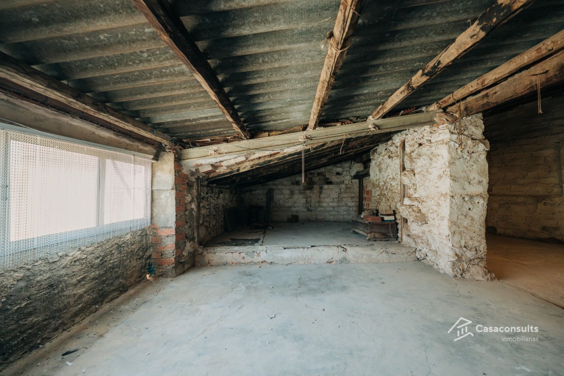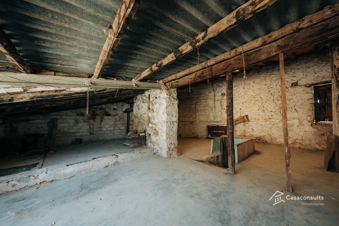 Planta sótano: Espacio amplio y adaptable, con suelo de tierra y una altura aproximada de 2 metros. Ideal para bodega, trastero o zona de almacenamiento. Dispone de una ventana y un baño en proceso de construcción. Primera planta: Zona con una acogedora habitación con ventana a la calle y paredes ya lucidas. Además, cuenta con una área destinada a cocina, con instalaciones de agua listas para su montaje. Zona diáfana: Espacio amplio y luminoso con ventanas de alturas irregulares, perfecto para crear un salón abierto o zona de estar moderna. Segunda planta: Dispone de dos dormitorios: uno con balcón exterior y otro sin ventana, ideal para adaptar como vestidor, despacho o baño adicional. Planta superior – Buhardilla: Gran espacio diáfano con infinitas posibilidades, perfecto para un estudio, zona de ocio o dormitorio principal tipo suite. Dispone de mucha luz natural. Y esta ultima planta, es de mayor tamaño que las anteriores