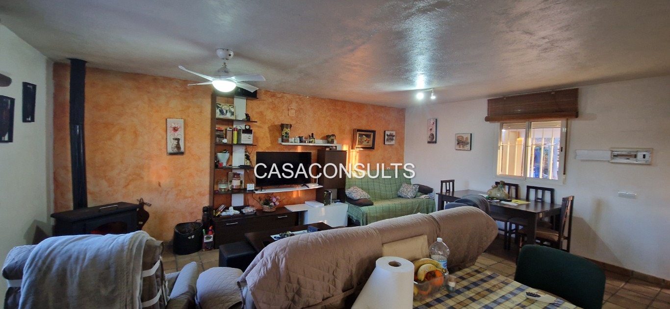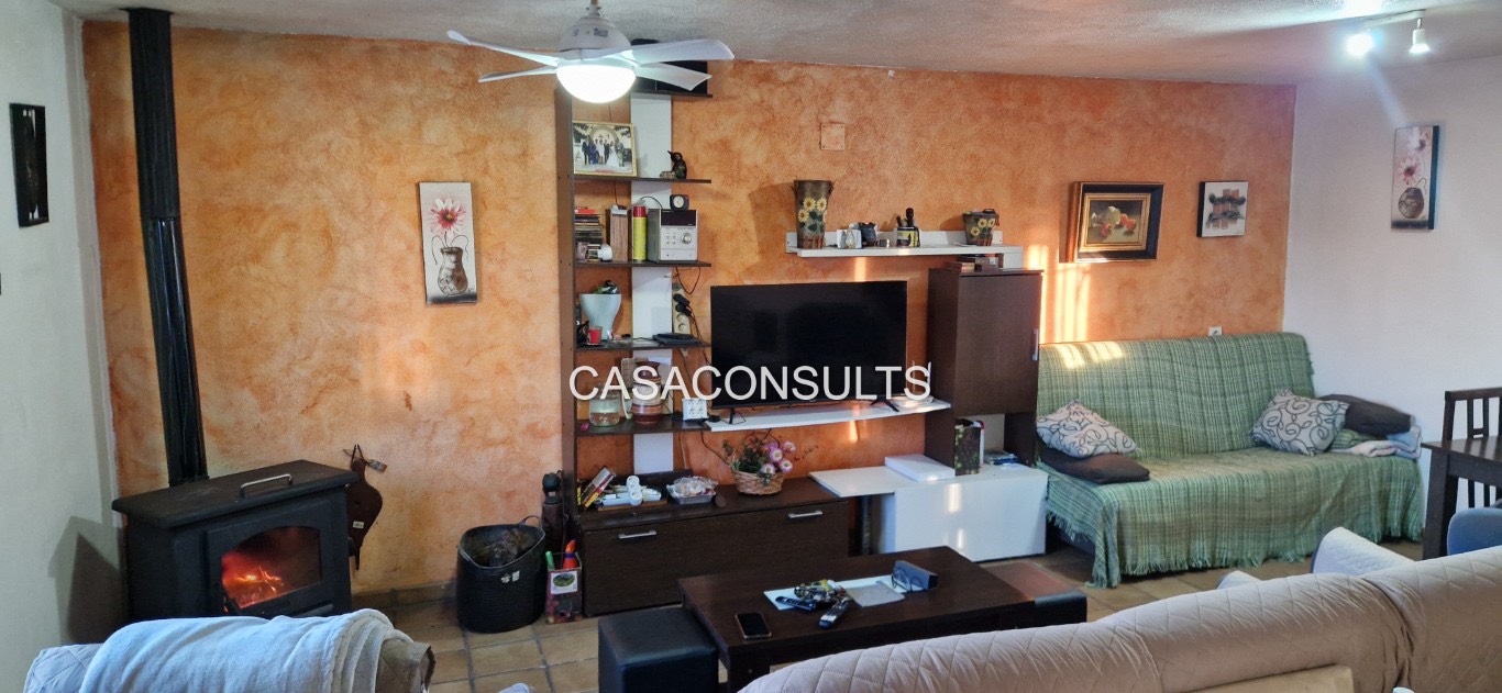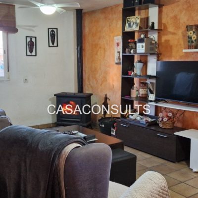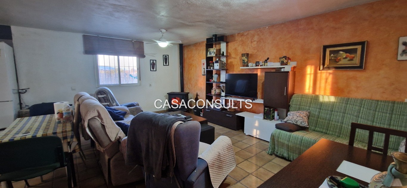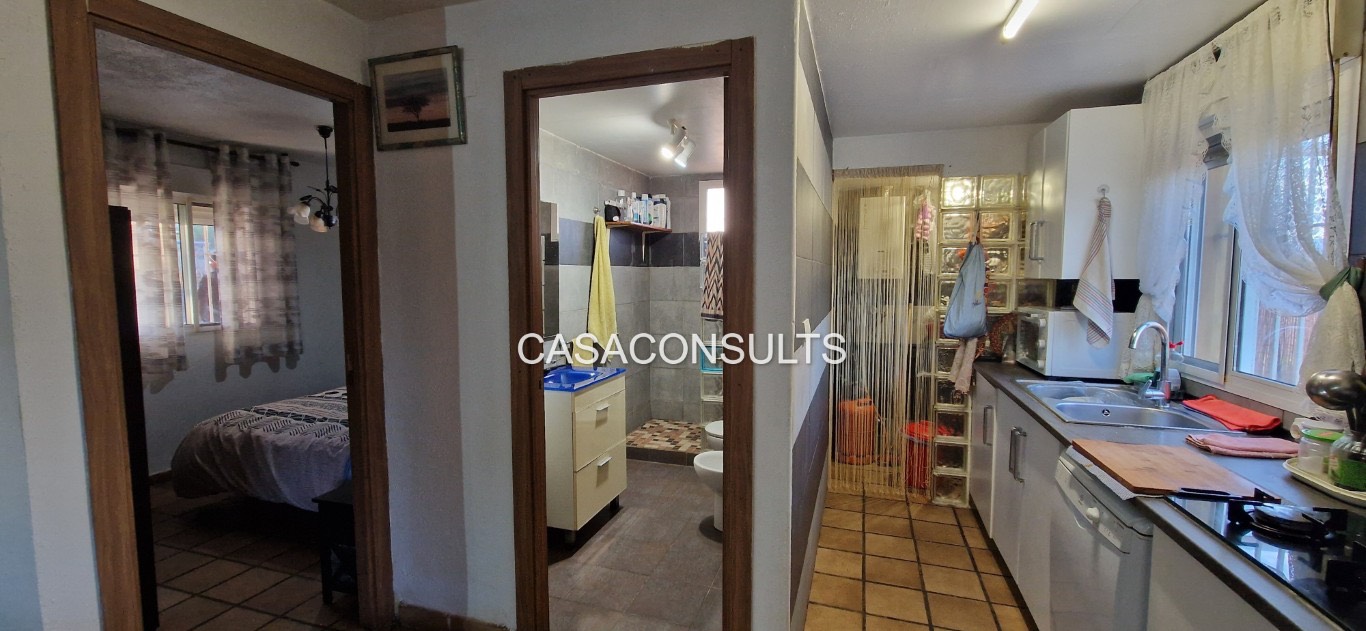 La vivienda se distribuye en una sola planta, lo que la hace especialmente cómoda. Aunque no se trata de una masía de grandes dimensiones, está perfectamente aprovechada y dispone de todo lo necesario: un amplio y luminoso salón-comedor con chimenea, que se convierte en el corazón del hogar, una cocina abierta integrada en el espacio, un cuarto de baño completo y la habitación principal. La abundante luz natural refuerza la sensación de calidez y bienestar en toda la vivienda.
